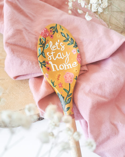 Colher de Pau Pintada à Mão - Let's Stay Home