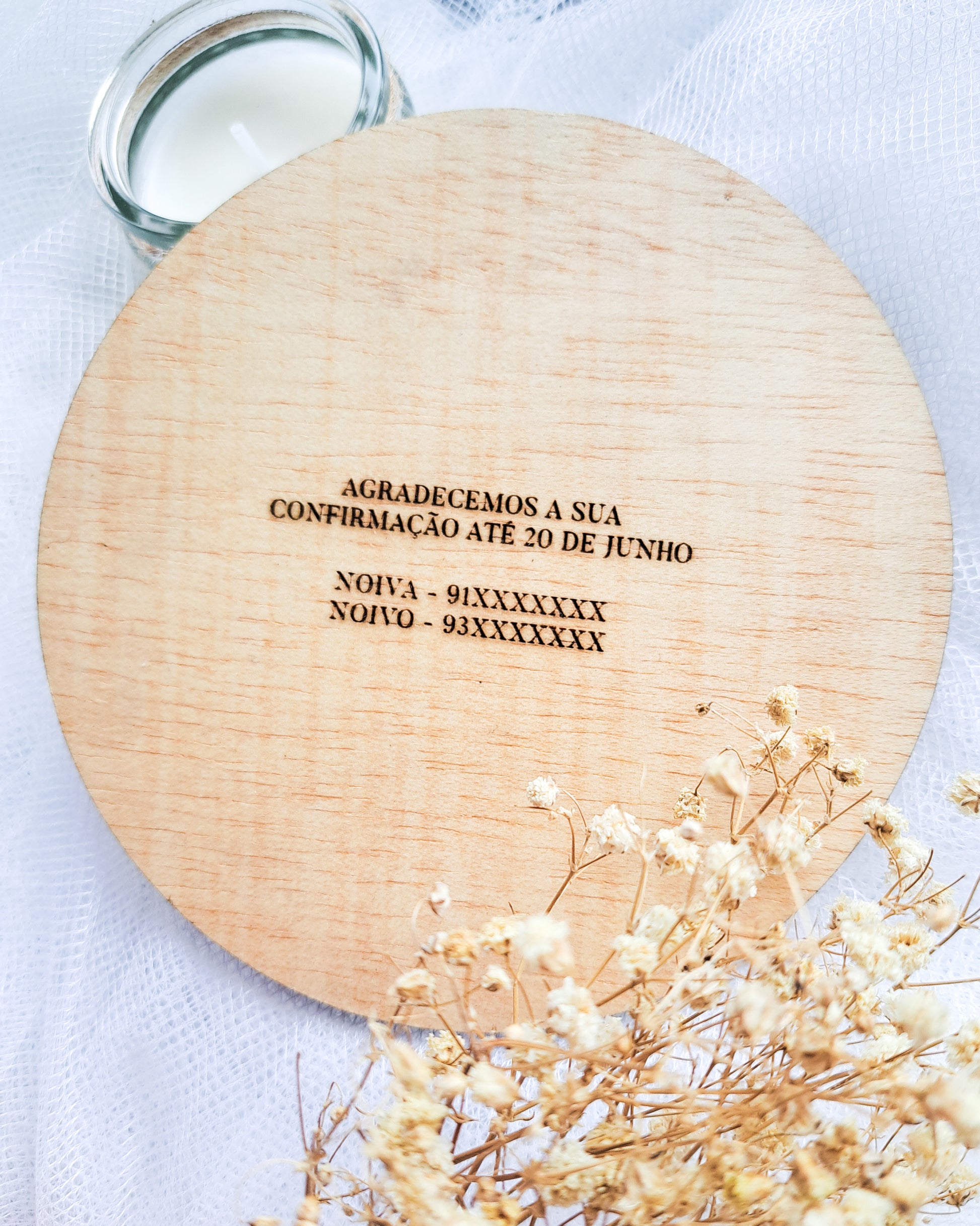 O nosso convite "Orchid" é perfeito para quem procura um design diferente e original, já que o mesmo é criado em madeira.