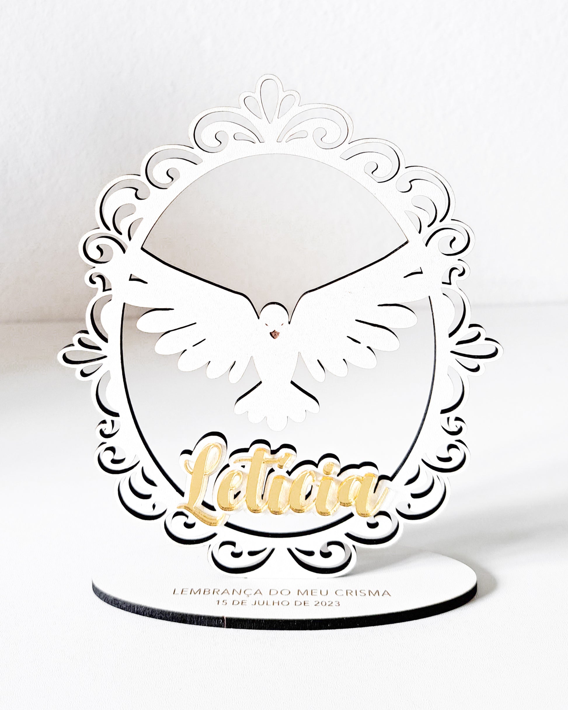 Lembrança personalizada com pomba perfeito para Primeira Comunhão / Profissão de Fé / Crisma.