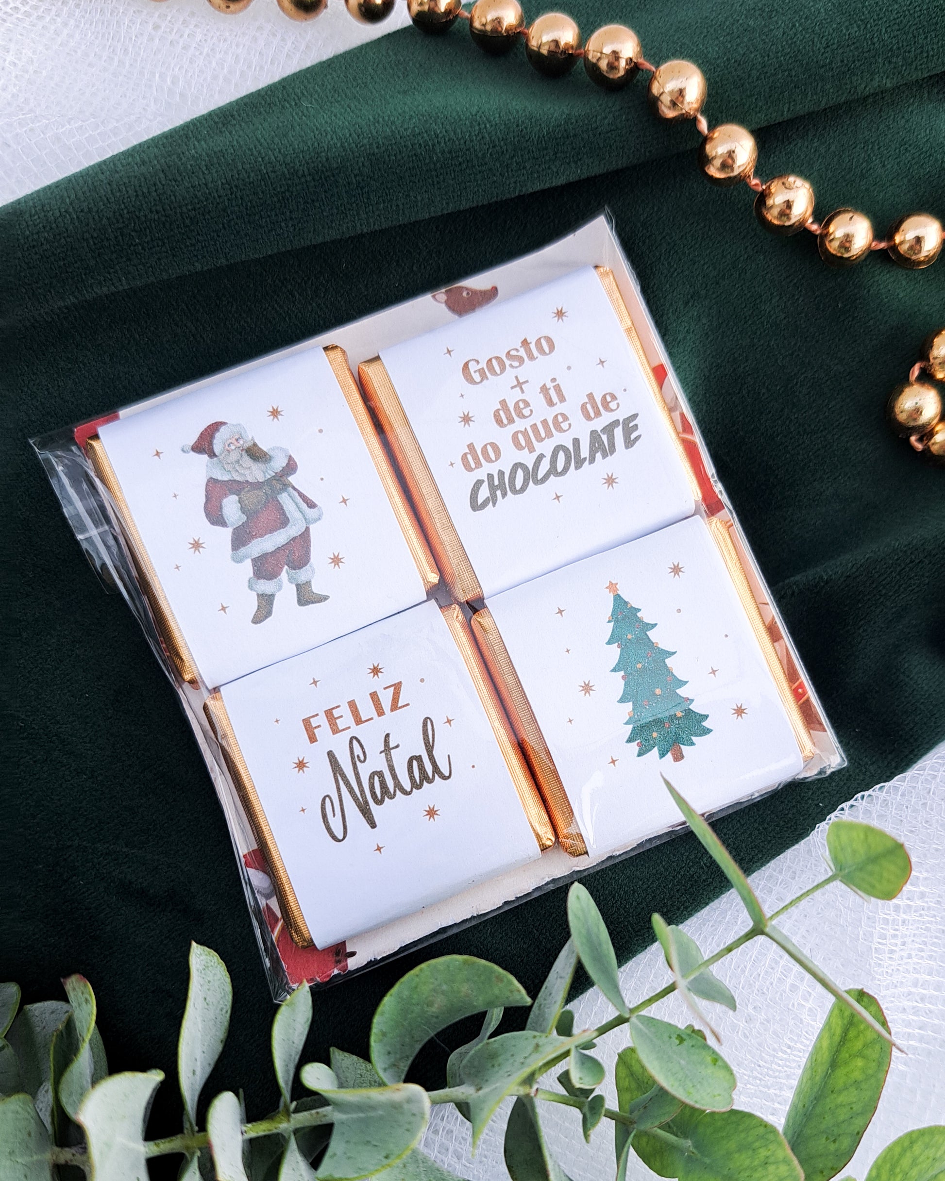 Saquinho com 4 chocolates napolitanas personalizadas com a seguinte mensagem: