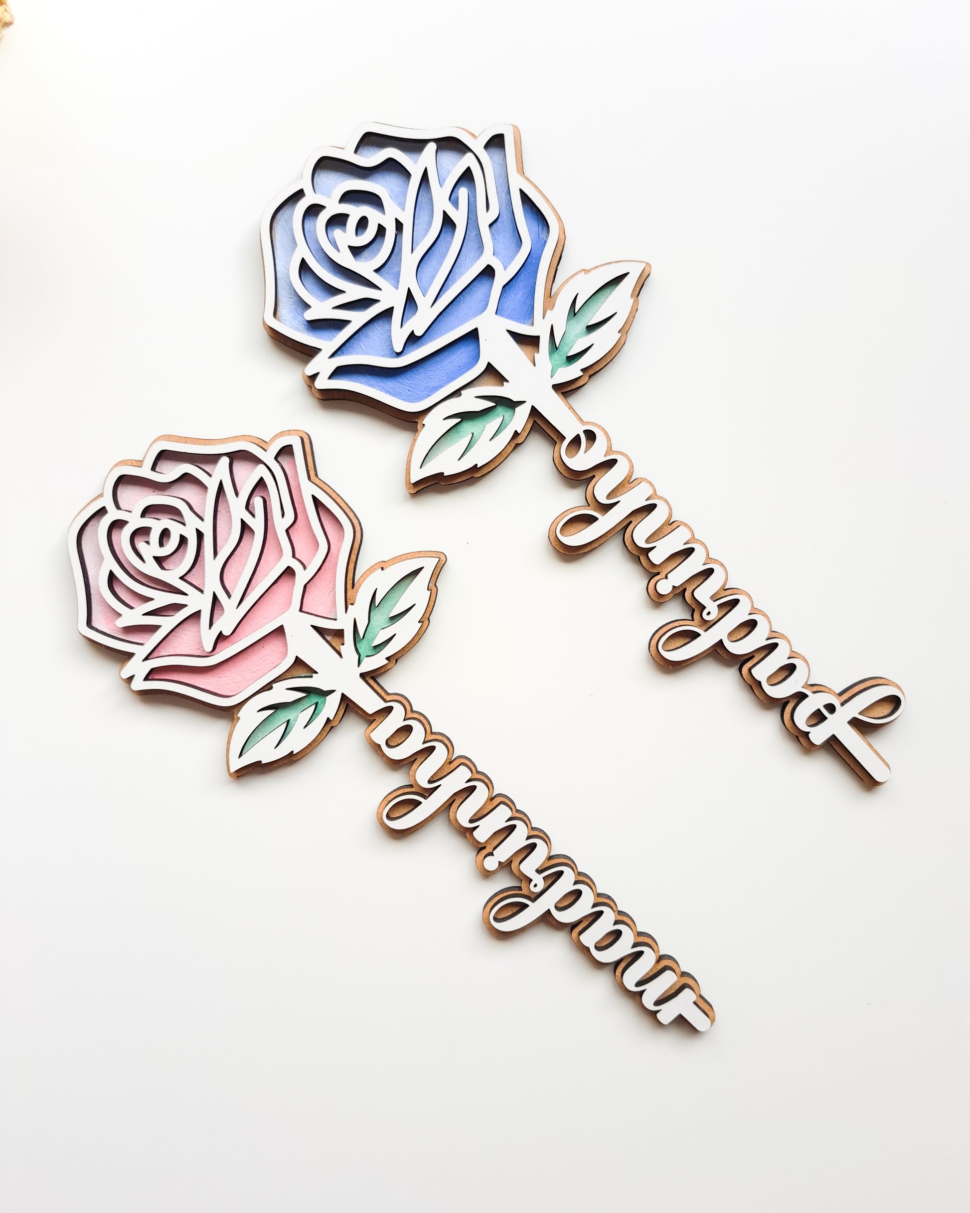 Rosa em MDF para oferecer à madrinha ou padrinho da sua flor.